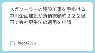 太陽光発電 メガソーラーの建設工事を手掛ける中川企画建設が負債総額約222億円で会社更生法の適用を申請 メガソーラーの建設工事を手掛ける中川企画建設が負債総額約222億円で会社更生法の適用を申請。 pic.twitter.com/oC1TezQTOH— 再エネNEWS (@saiene_news) October 14, 2025中川企画建設... 2025.10.15 太陽光発電電気電気料金高配当