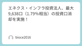 太陽光発電 エネクス・インフラ投資法人、最大9,638口(1.79%相当)の投資口消却を実施!